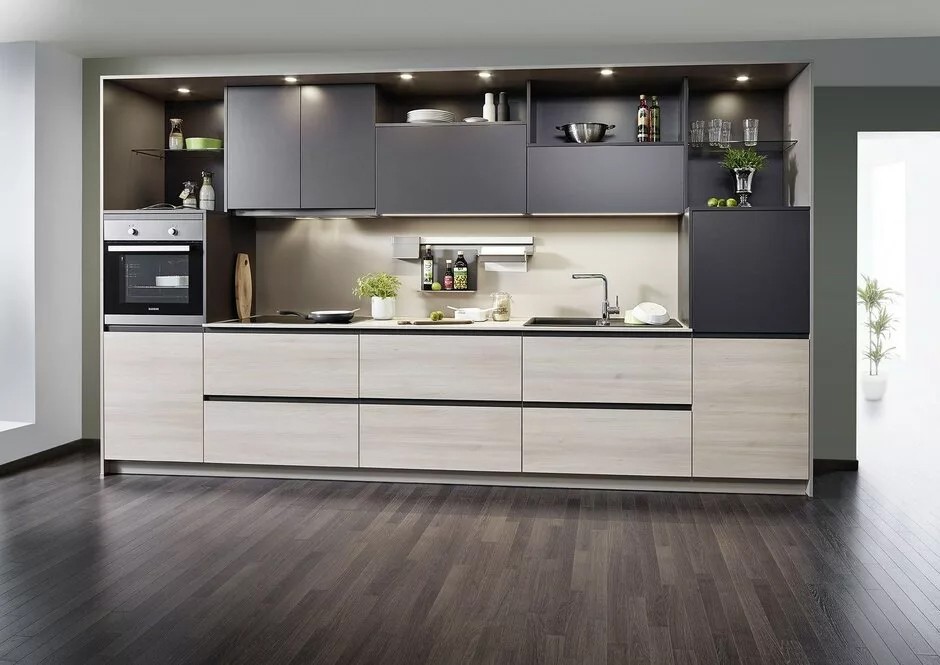 Фасады – всегда мдф, а покрытие на выбор (в зависимости от Вашего бюджета): soft-touch, пластик, AGT, FENIX, эмаль.